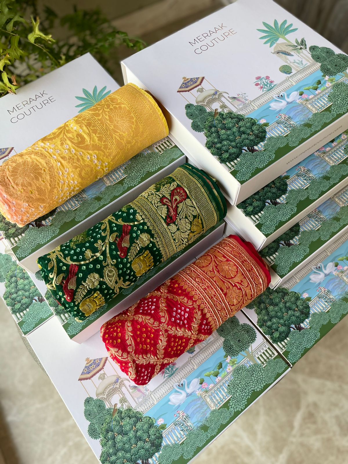 Meraak Couture offers luxury Indian sarees online made from pure fabrics with intricate handwoven techniques like Tilfi, Meenakari, Bandhani, and Banarasi craftsmanship sourced directly from artisans.