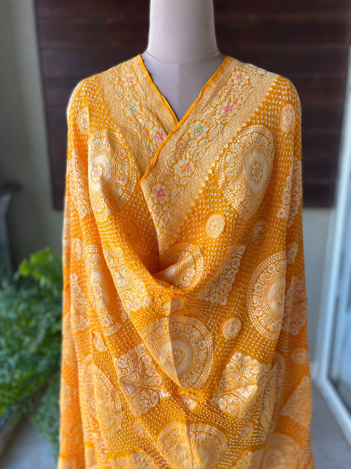 Product: Handwoven Pure Bandhani Banarasi Meenakari Dupatta