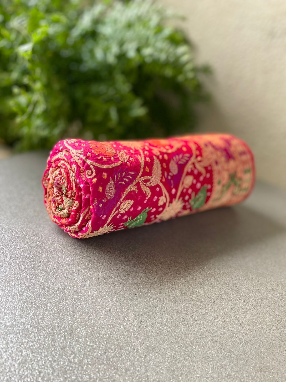 Ombre Shaded Red & Fuchsia Pink color Pure Bandhani dupatta with Banarasi Meenakari Weaving and Luxury Motifs