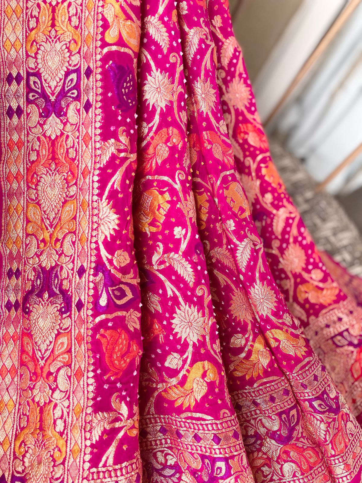Product: Handwoven Pure Bandhani Banarasi Meenakari Dupatta