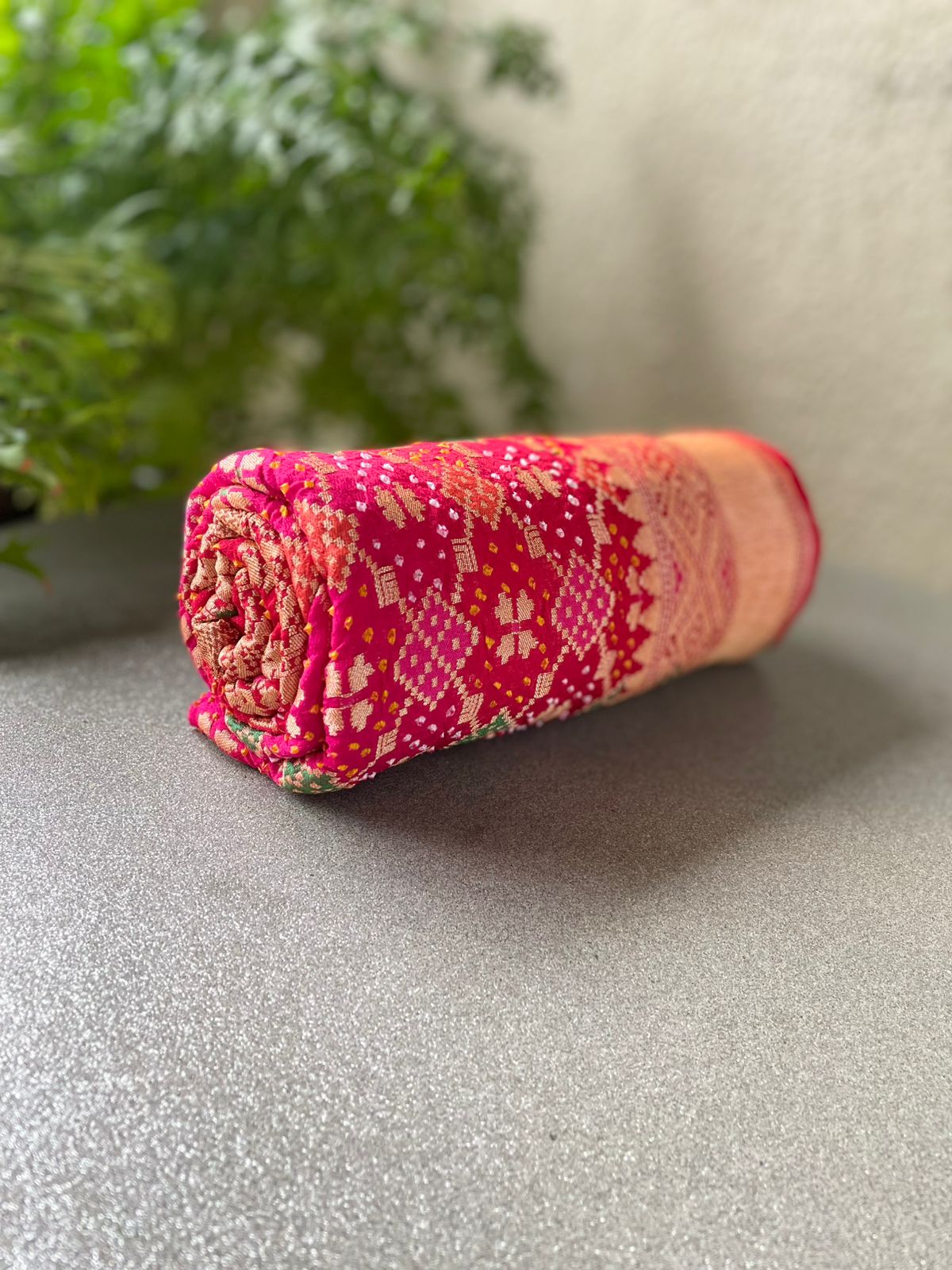 Ombre Shaded Red & Fuchsia Pink color Pure Bandhani dupatta with Banarasi Meenakari Weaving