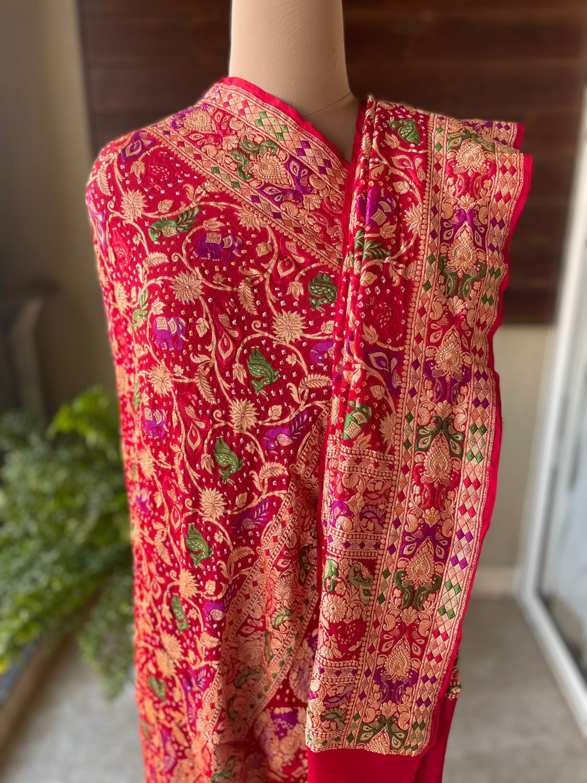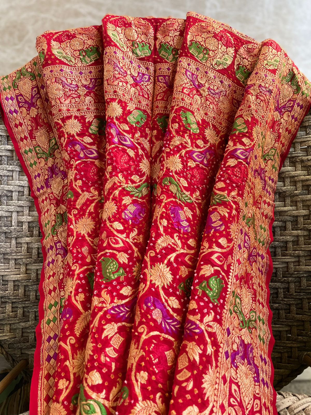Product: Handwoven Pure Bandhani Banarasi Meenakari Dupatta