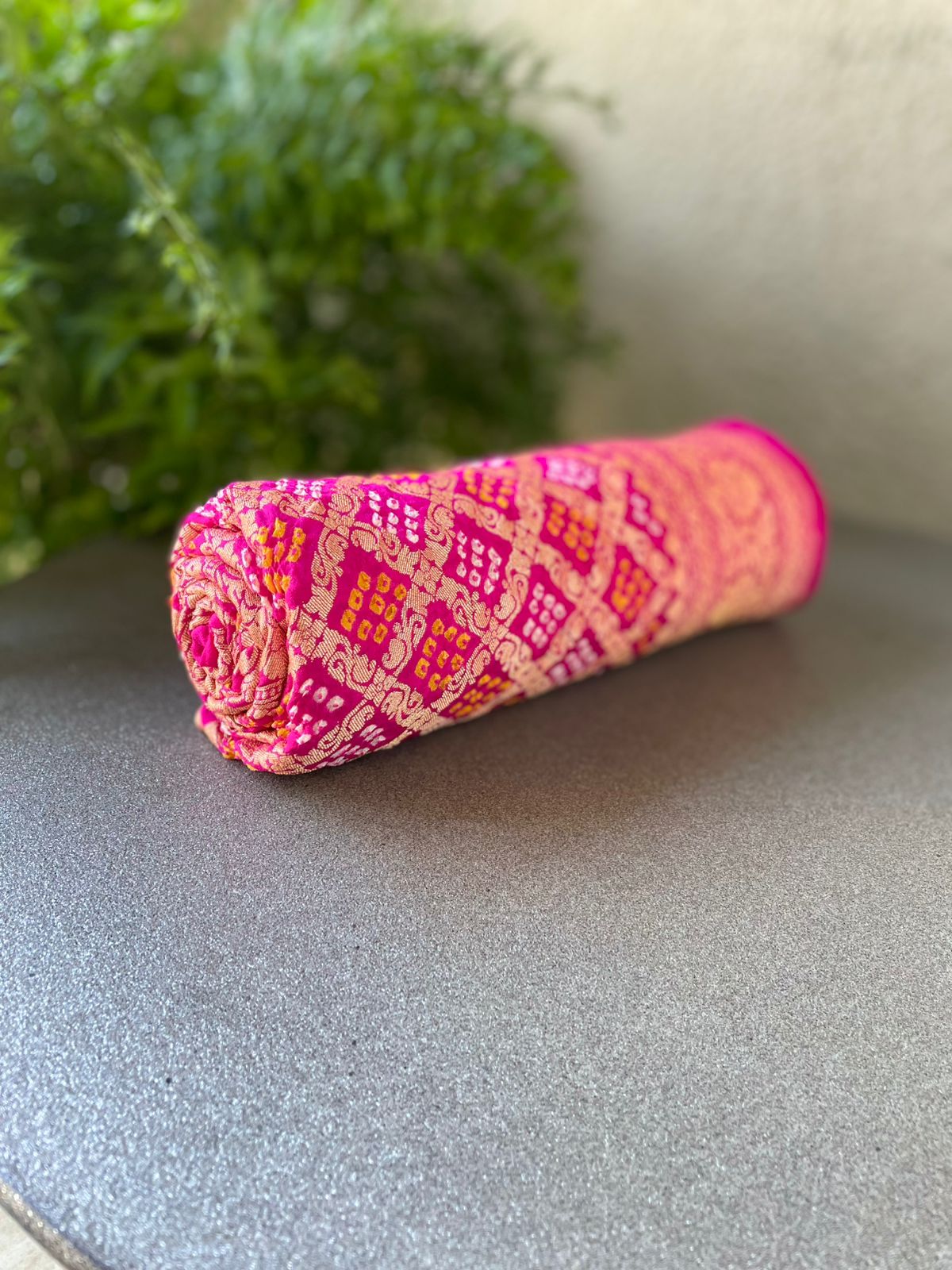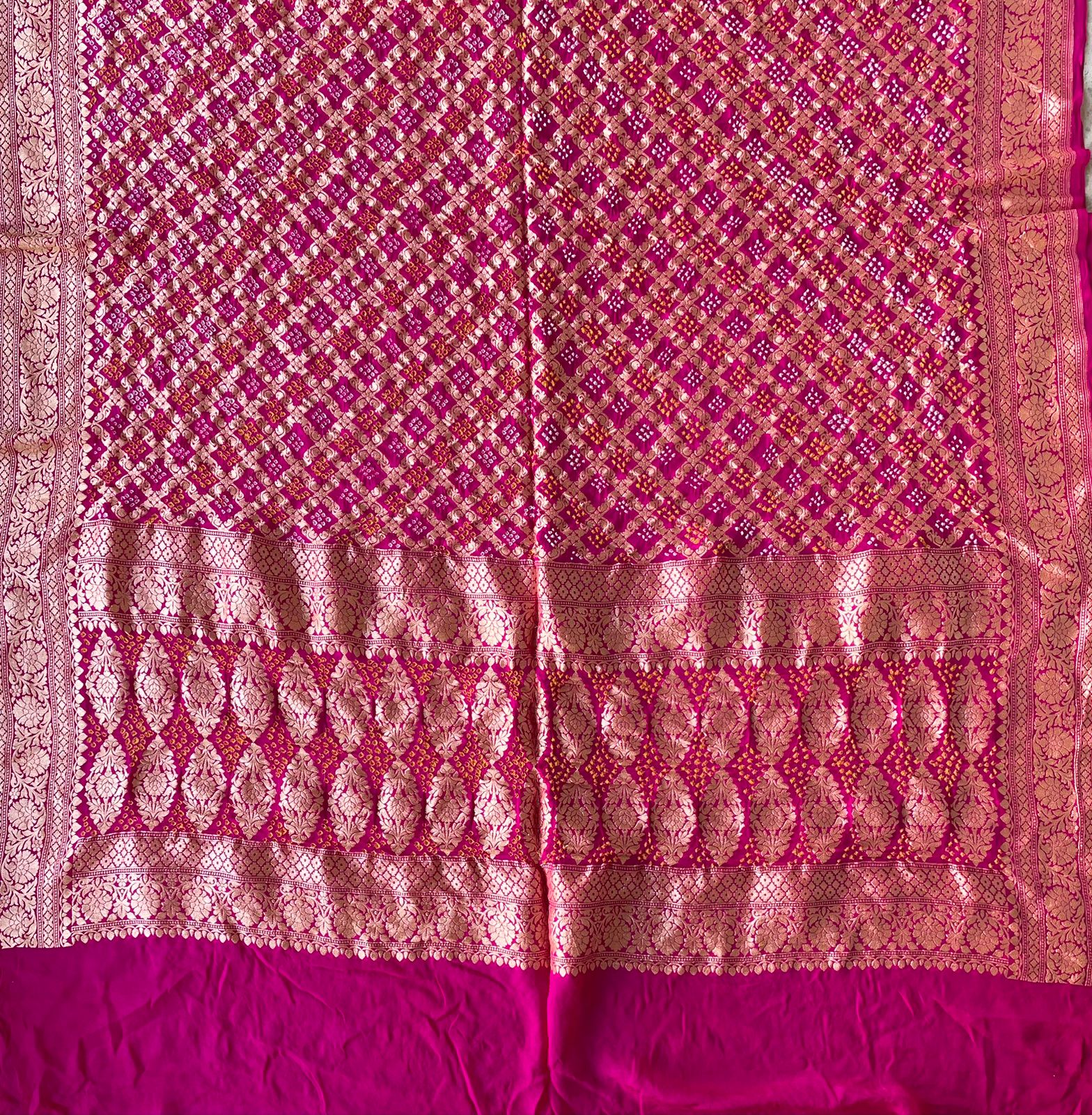 Fuchsia Pink Color Pure Bandhani Dupatta with Banarasi Handwoven Border