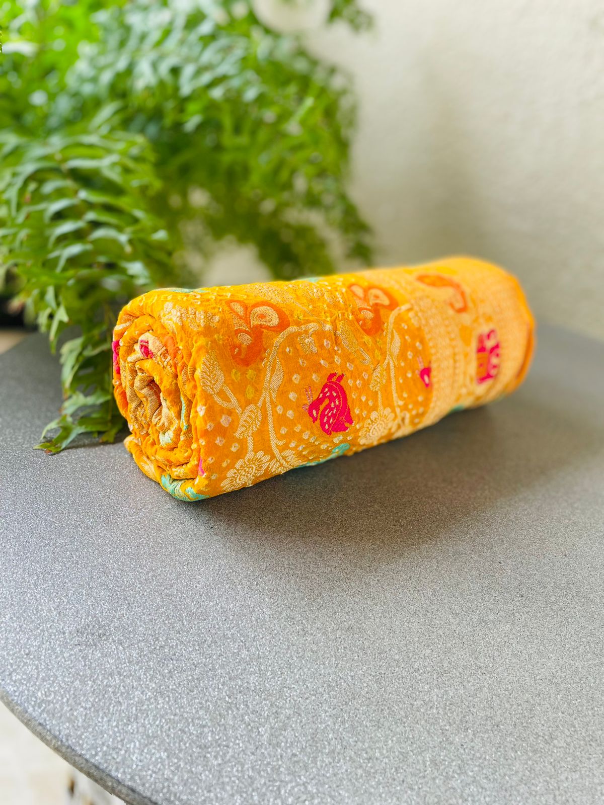 Kesari Yellow color Pure Bandhani dupatta with Banarasi Meenakari Weaving with Luxury Motifs