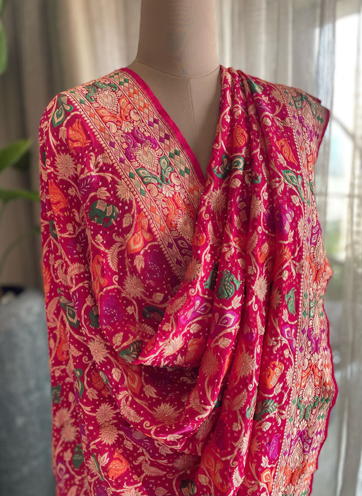 Product: Handwoven Pure Bandhani Banarasi Meenakari Dupatta