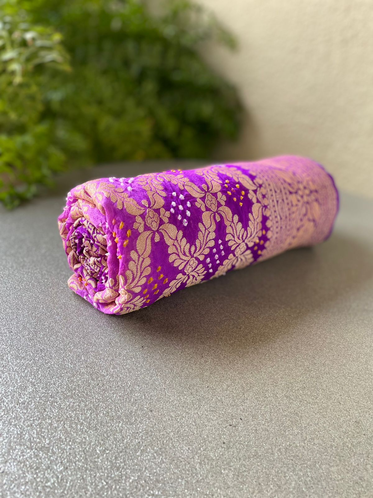 Ombre Shaded Purple & Lavender Color Pure bandhani dupatta with handwoven banarasi border