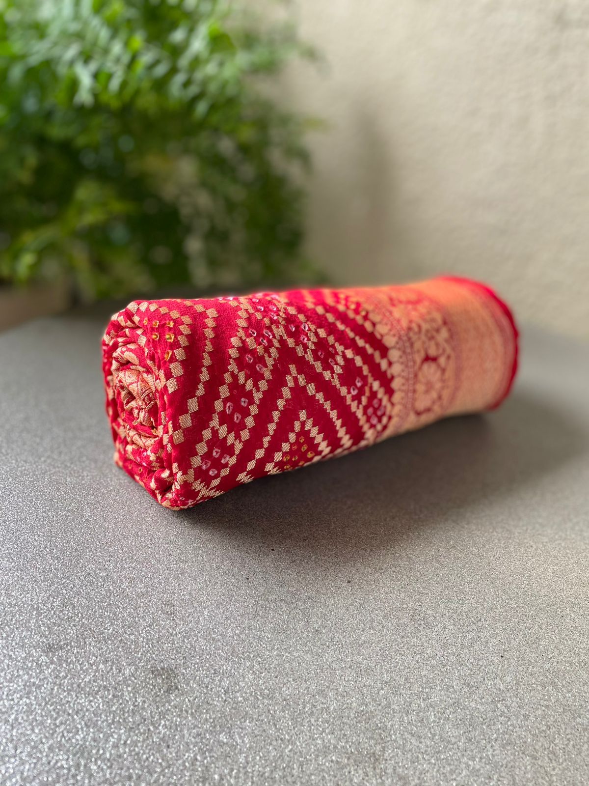 Red Color Pure Bandhani dupatta with Banarasi border