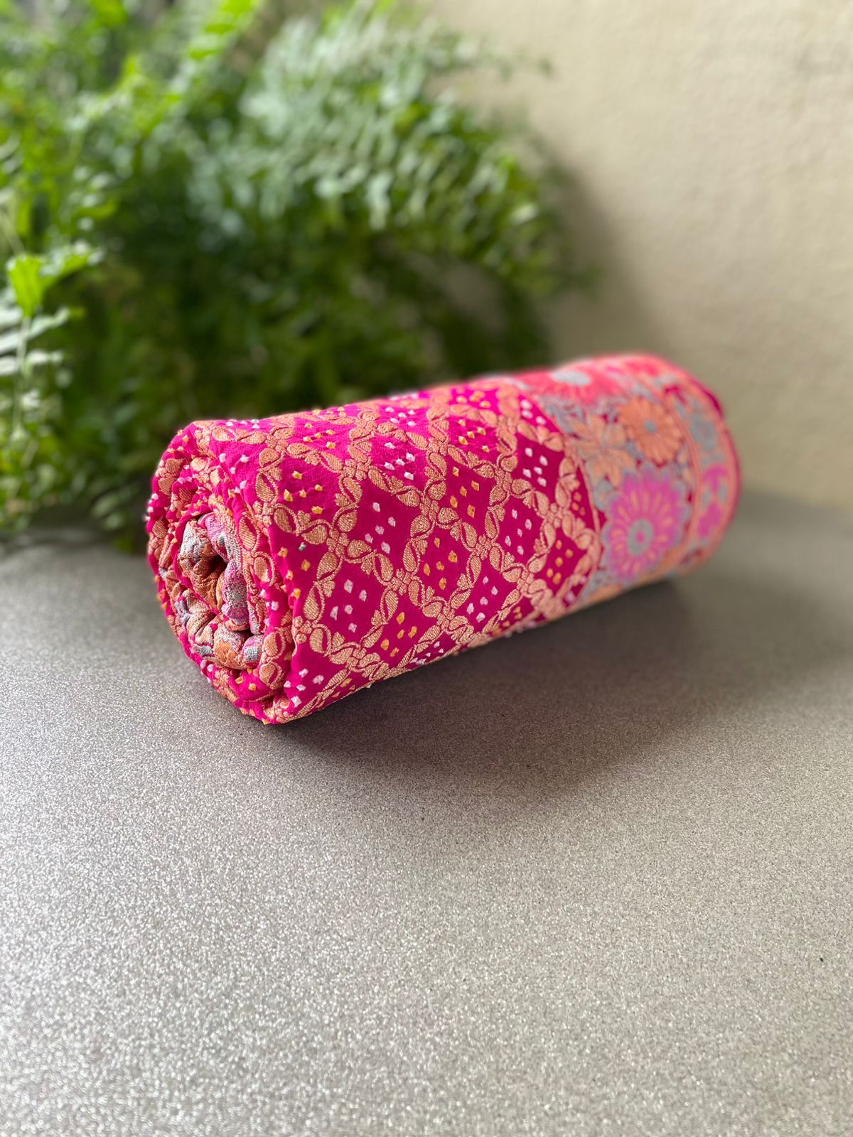 Fuchsia Pink color Pure Bandhani dupatta with Banarasi Meenakari Weaving and Luxury Motifs