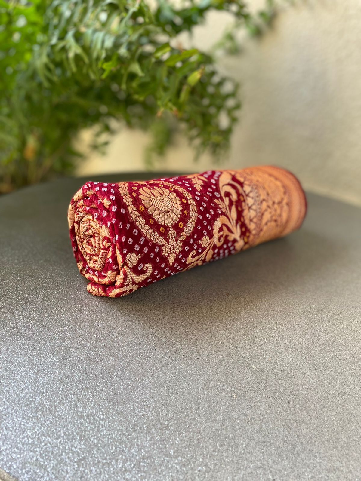 Maroon Color Pure Bandhani Dupatta with Handwoven Banarasi border