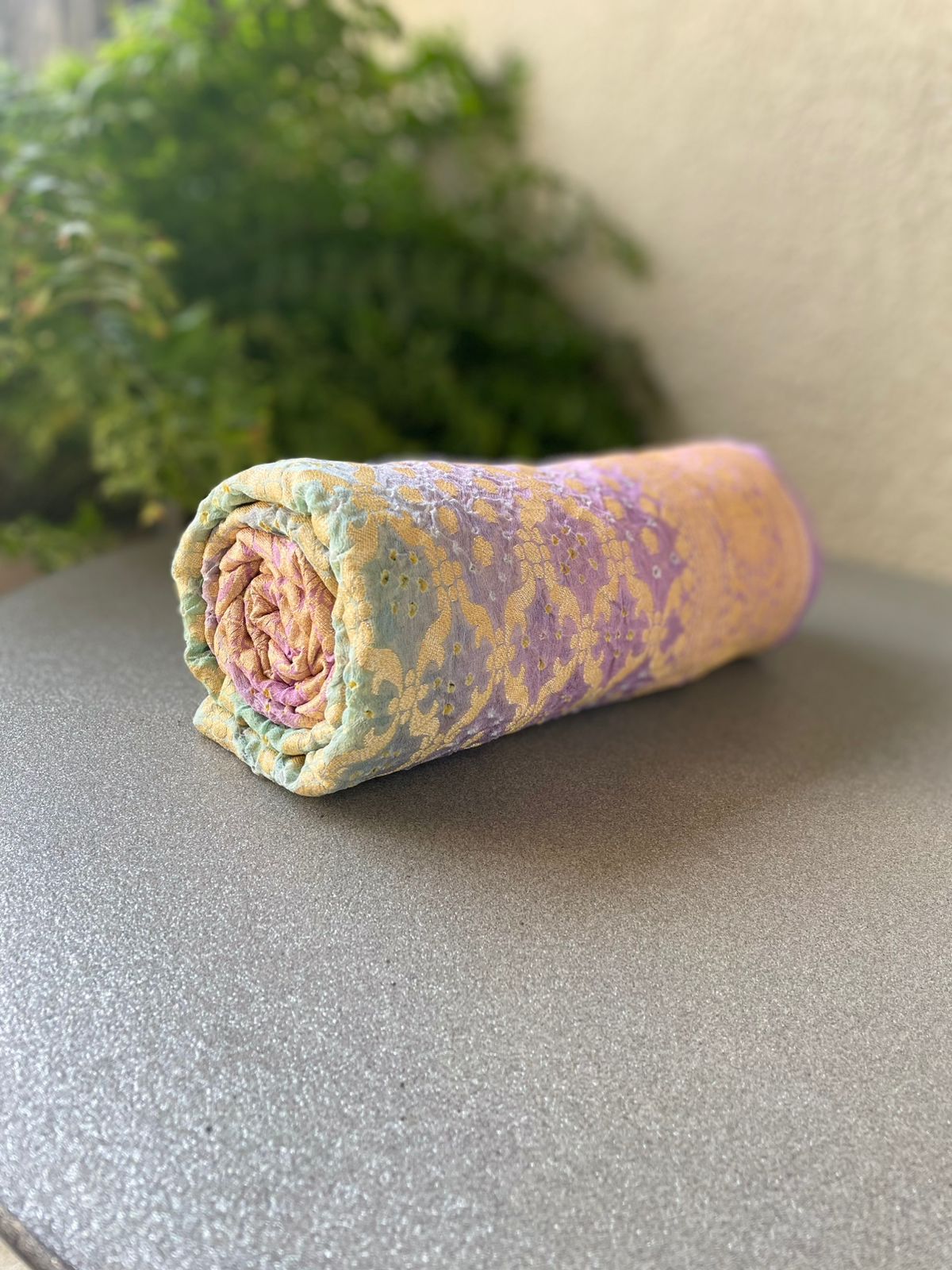Ombre Shaded Lavender & Sea Green color Pure Bandhani Dupatta with Banarasi Handwoven Border