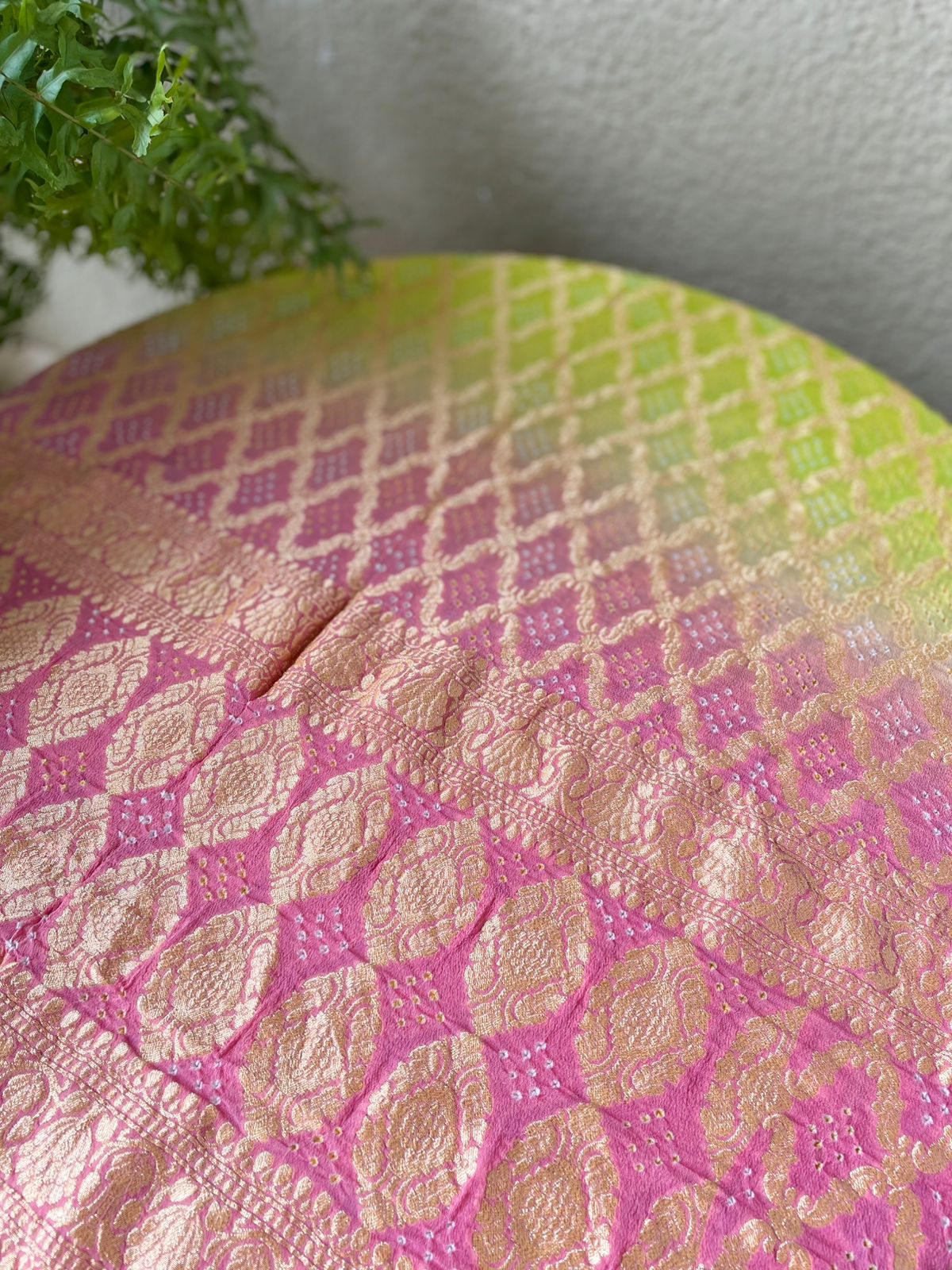 Ombre Shaded Lilac & Mint Green Color Pure Bandhani dupatta with Banarasi border
