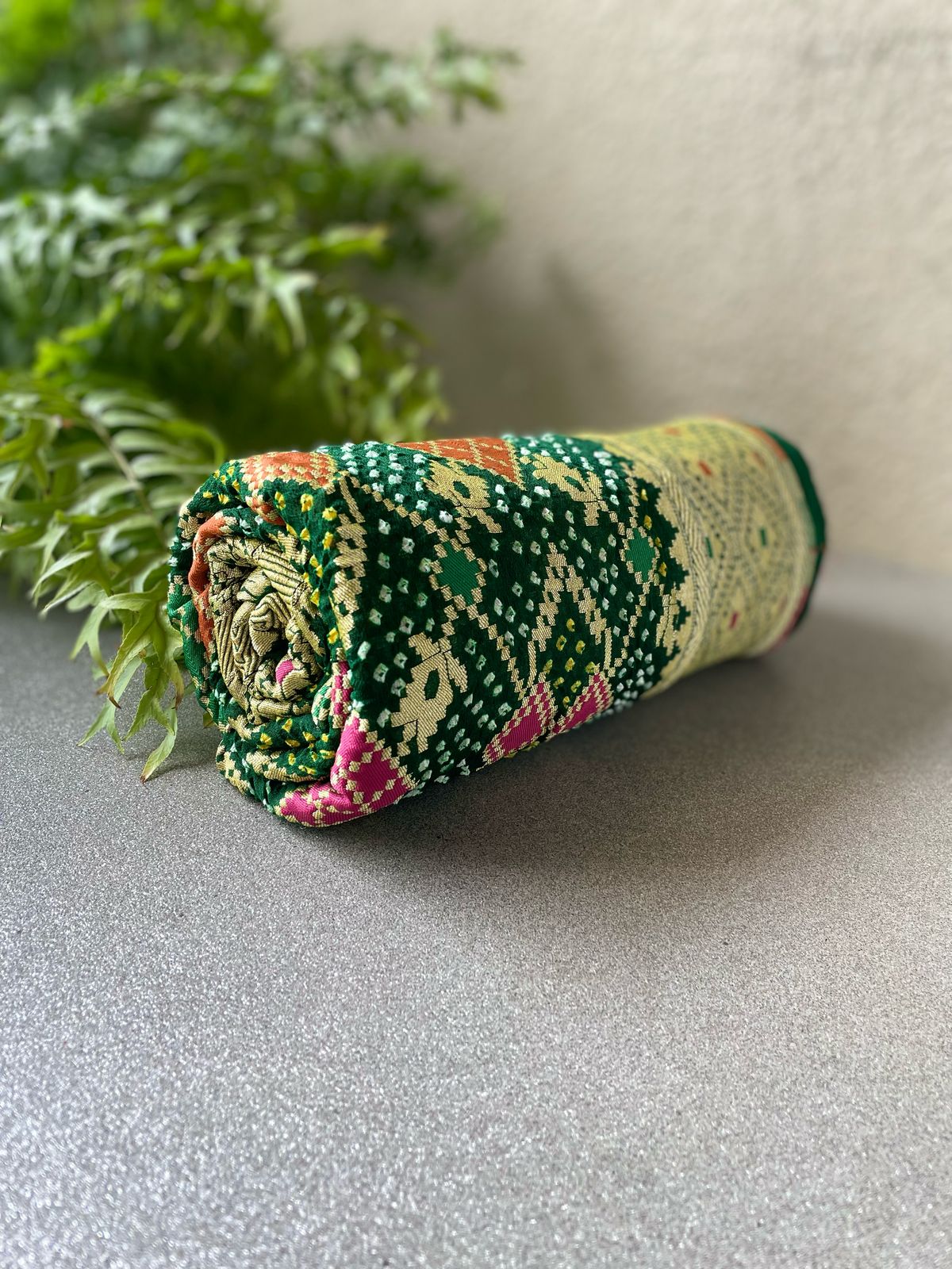 Bottle Green color Pure Bandhani dupatta with Banarasi Meenakari Weaving