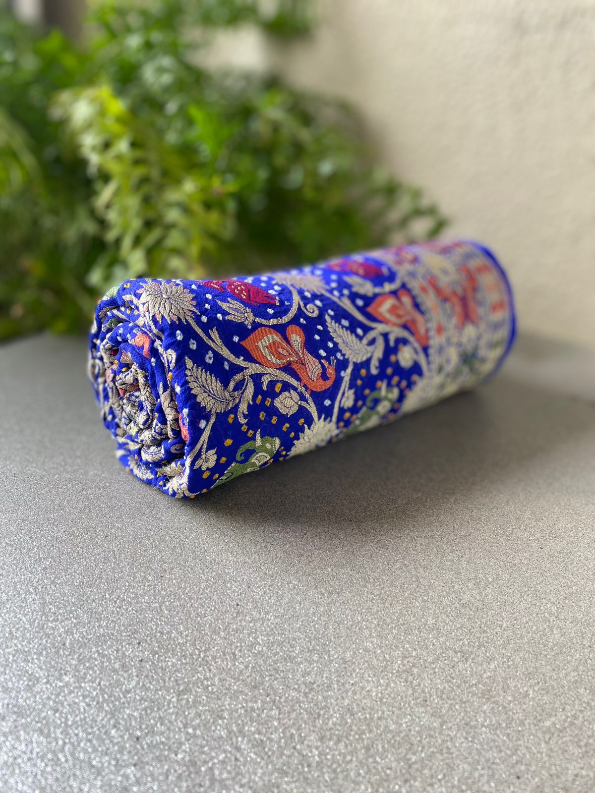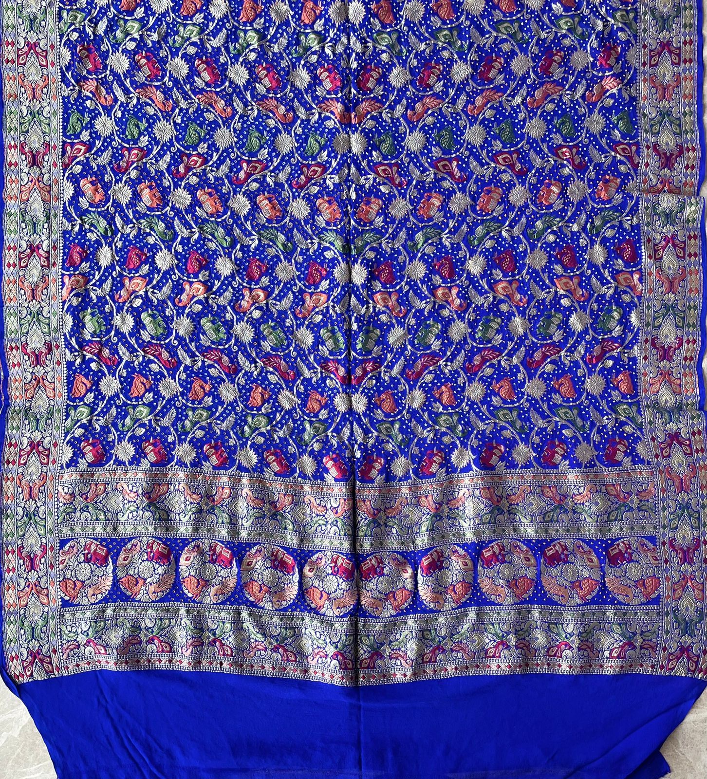 Royal Blue color Pure Bandhani dupatta with Banarasi Meenakari Weaving and Luxury Motifs
