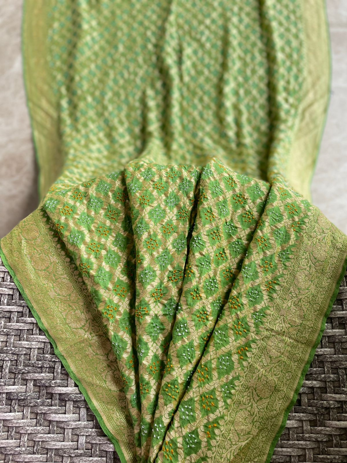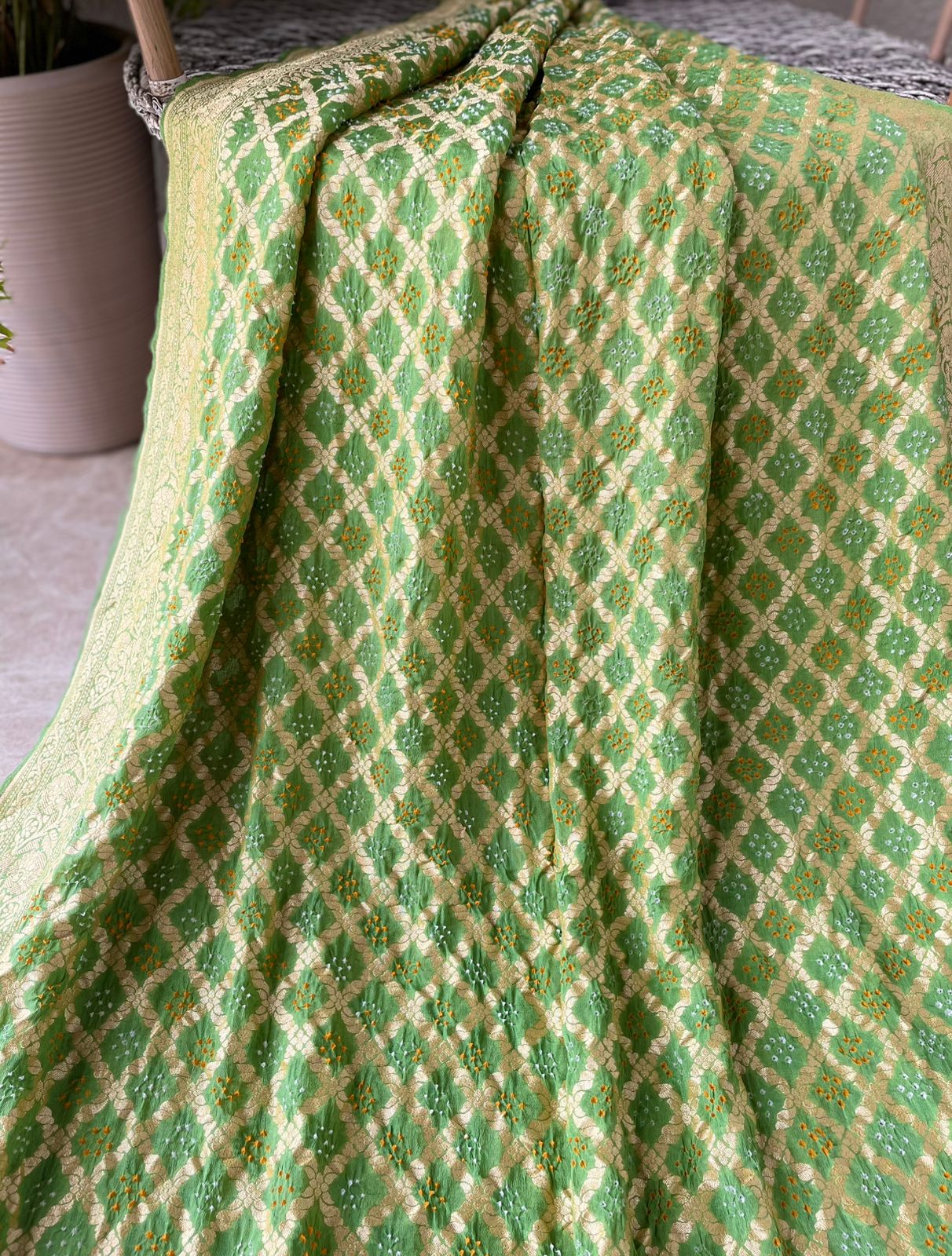 Sage Green Color pure bandhani saree with handwoven banarasi border