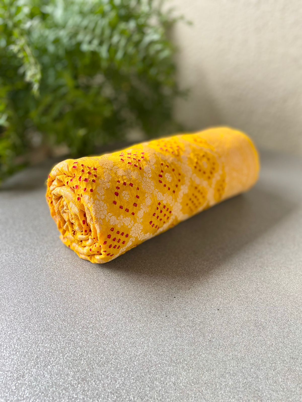 Kesari Yellow color Pure Bandhani dupatta with Banarasi Handwoven Border