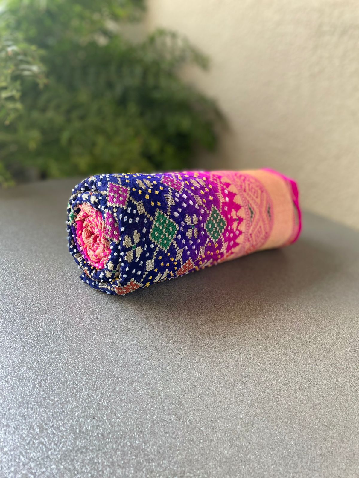 Ombre Shaded Fuchsia pink & Navy Blue color Pure Bandhani dupatta with Banarasi Meenakari Weaving